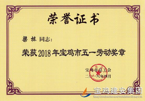 寶雞市‘五一勞動(dòng)獎(jiǎng)?wù)隆@得者 梁 棟