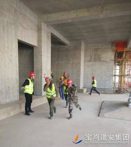 建筑施工現(xiàn)場的安全防范一直是建筑行業(yè)工作的重點,冬季施工消防工作更是重中之重,為切實加強施工現(xiàn)場消防安全教育,提高施工現(xiàn)場各單位應(yīng)急救援小組應(yīng)對火災(zāi)危險的應(yīng)急處置能力,積累應(yīng)急組織、人員疏散、消防救助等實戰(zhàn)經(jīng)驗,切實做好施工現(xiàn)場的安全工作。2018年11月21日下午在寶雞建安集團公司承建的泰森?億佳苑項目施工現(xiàn)場舉行了一場消防應(yīng)急疏散演習。本次活動由寶雞建安集團股份有限公司、陜西中安工程咨詢管理有限公司、陜西泰森房地產(chǎn)開發(fā)有限公司聯(lián)合組織演習。施工現(xiàn)場100多人參加了本次演習活動,學習到處置火災(zāi)危險的應(yīng)急方法,達到了演習目的。 演習活動前,寶雞建安集團公司安全部經(jīng)理何偉,科員符鵬、張震及寶雞建安集團公司第六項目部應(yīng)急救援小組組長邵哲明、周潔組織項目部應(yīng)急救援小組成員針對施工人員火場逃生、救援疏散等事項,精心設(shè)計了消防演習方案,并就施工現(xiàn)場消防設(shè)施的分布,以及火災(zāi)發(fā)生時應(yīng)該注意的事項進行了說明。
