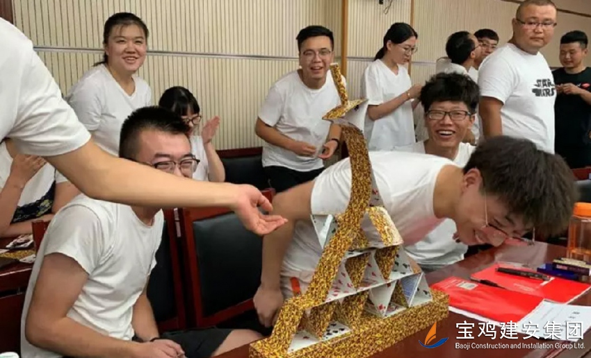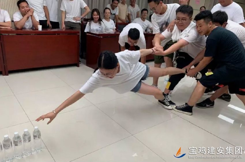 培訓(xùn)期間,公司組織了團(tuán)隊拓展活動,本次拓展分8支戰(zhàn)隊,結(jié)合無領(lǐng)導(dǎo)小組討論、木桶原理和管理游戲等方法,進(jìn)行搭紙牌、攻城略地、隔空取水和乒乓快跑四項活動。在團(tuán)隊拓展中,各隊隊員都充分發(fā)揮自己的聰明才智,展示自己的才華,合理分工協(xié)作,挑戰(zhàn)一個個看似不可能完成的任務(wù)。通過四項活動的舉行及點評,團(tuán)隊協(xié)作的概念逐步深入員工腦海,深入淺出地讓員工明白了1+1>2的道理,同時也是在團(tuán)隊拓展的活動當(dāng)中,人力資源部發(fā)現(xiàn)了許多名具有領(lǐng)導(dǎo)力的新員工,他們在活動中參與度高,組織有序,影響力強(qiáng),最終帶領(lǐng)自己的團(tuán)隊取得了優(yōu)良的成績。