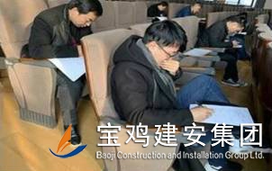 本次考核由人力資源部組織,各職能部室根據(jù)各崗位員工應知應會知識點及重要的標準、規(guī)范內(nèi)容提前出題,題型包含單選題,多選題、填空題、判斷題及簡答論述題。項目技術(shù)負責人試題選自歷年一級建造師經(jīng)典例題,考試時間為三個小時,其余崗位考核時間均為一個半小時。本次考核采取閉卷考試,書面作答,為了保證本次考試的嚴肅性及公正性,在考前將所有人員的手機、資料統(tǒng)一收集存放,并加強考場巡查頻率,在考試過程中,各考試員工認真審題,積極作答,每位員工都能按時答完試卷,充分表明大家也抽出了一定時間去學習自己崗位的理論知識點。