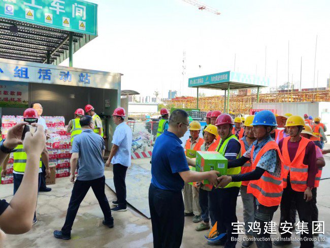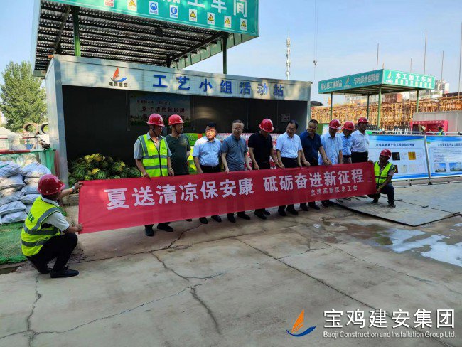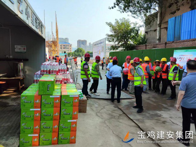 7月18日上午,寶雞高新區(qū)管委會黨工委委員、管委會副主任楊海翔,高新區(qū)總工會主席李廣強,區(qū)教育系統(tǒng)黨委書記、教育體育局局長唐宏,副局長劉輝等一行領(lǐng)導(dǎo),前往建安集團承建的寶雞高新第三幼兒園建設(shè)項目工地,走訪慰問一線員工,開展“夏送清涼”活動。