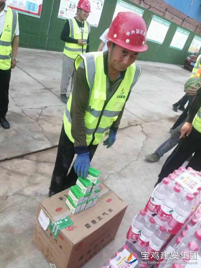 活動現(xiàn)場,高新區(qū)管委會領(lǐng)導(dǎo)親自將西瓜、飲料、純凈水、藿香正氣水等多種防暑降溫用品送到了現(xiàn)場的廣大員工手中,向大家三伏天堅守在一線崗位表示感謝和問候。