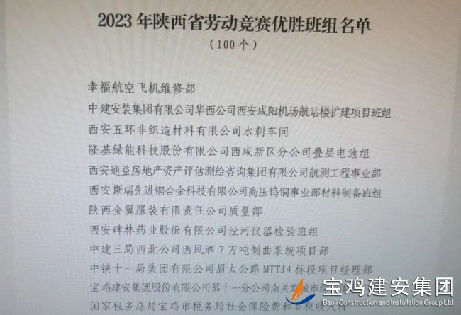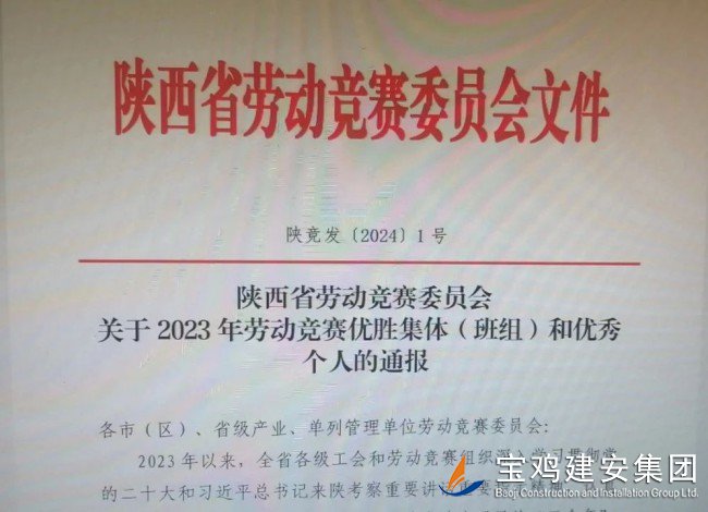 近日,陜西省勞動競賽委員會發(fā)出通知,在全省范圍內(nèi)通報(bào)嘉獎(jiǎng)獲得2023年度陜西省勞動競賽工作的先進(jìn)集體和優(yōu)秀個(gè)人,集團(tuán)公司工會上報(bào)、省市兩級工會聯(lián)合推薦的公司十一分公司南關(guān)路城市綜合體項(xiàng)目部榜上有名,獲得優(yōu)勝班組殊榮。