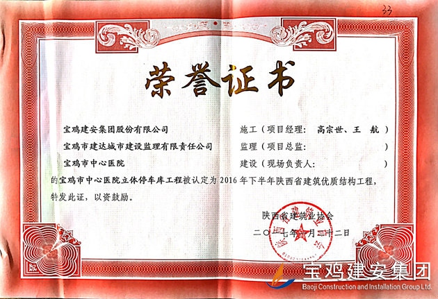 寶雞市中心醫(yī)院立體停車庫 省優(yōu)質(zhì)結(jié)構(gòu)工程