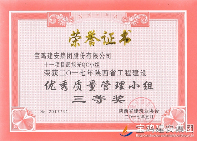 十一項目部旭光QC小組 優(yōu)秀質量管理小組