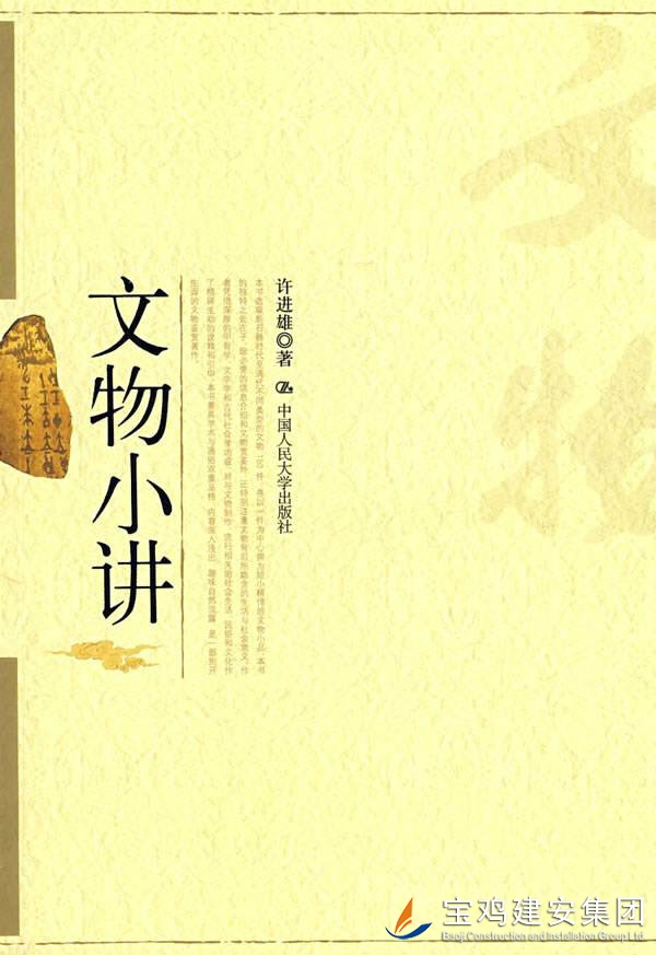 公司開展“書香企業(yè)”讀書月活動(dòng),提供了大量?jī)?yōu)秀的各類書籍供員工閱讀,我有緣拜讀到一本臺(tái)灣著名學(xué)者許進(jìn)雄先生的作品《文物小講》。 這本書以通俗易懂而不失學(xué)術(shù)的小品文方式,介紹了150件中國(guó)文物。文物歷史橫跨新石器時(shí)代至清代,文體精悍短小,詮釋精辟生動(dòng),讓人閱讀時(shí)仿佛置身博物館中游覽,不知不覺引人入勝。