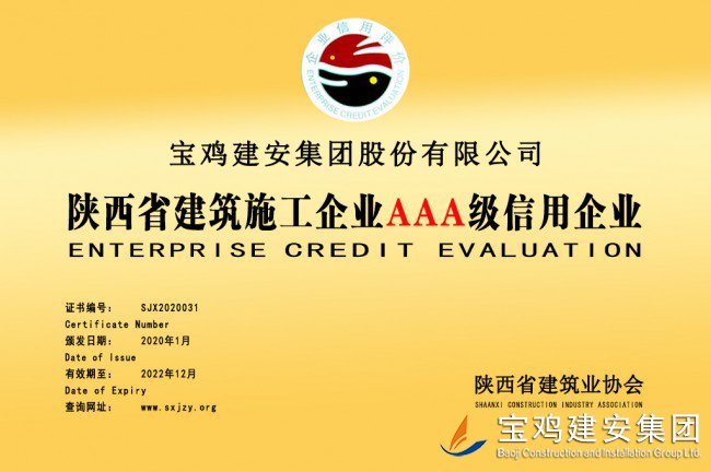 陜西省建設(shè)施工企業(yè)AAA級(jí)信用企業(yè)