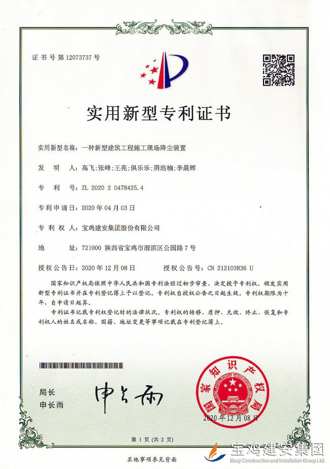 一種新型建筑工程施工現(xiàn)場(chǎng)降塵裝置實(shí)用新型專利