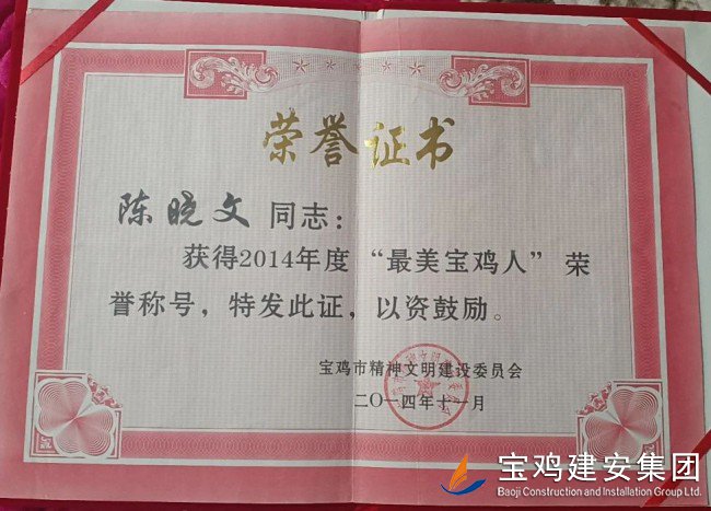 一年一度的“五一”國際勞動(dòng)節(jié)到來之際,從寶雞市總工會(huì)傳來喜訊, “2024年度寶雞市五一勞動(dòng)獎(jiǎng)?wù)隆毕冗M(jìn)名單正式確定,我司安裝分公司先后擔(dān)任平?jīng)龈淮簣@及西寧長島(宗地三十六)項(xiàng)目一期一標(biāo)段安裝電氣施工員的陳曉文同志榜上有名,受到通報(bào)嘉獎(jiǎng)! 陳曉文同志,1998年畢業(yè)于寶雞技師學(xué)院土建專業(yè),作為一名一線員工,多年以來,他深知理論知識(shí)的重要性,利用業(yè)余閑暇時(shí)間,不斷學(xué)習(xí)土建安裝電氣專業(yè)課程。憑借著不懈的努力和刻苦鉆研,他于2015年通過了二級建造師考試,繼而于2020年通過了一級建造師考試,連續(xù)取得了機(jī)電、市政、公路證書。 陳曉文同志長期工作在施工一線,勤勤懇懇、兢兢業(yè)業(yè),以勤奮努力的工作熱忱和扎實(shí)細(xì)致的工作作風(fēng),贏得了公司上下的一致好評,他所帶領(lǐng)的班組2014、2015、2016年連續(xù)被評為優(yōu)秀班組。其本人也曾于2014年被寶雞市文明委授予“最美寶雞人”榮譽(yù)稱號。 |