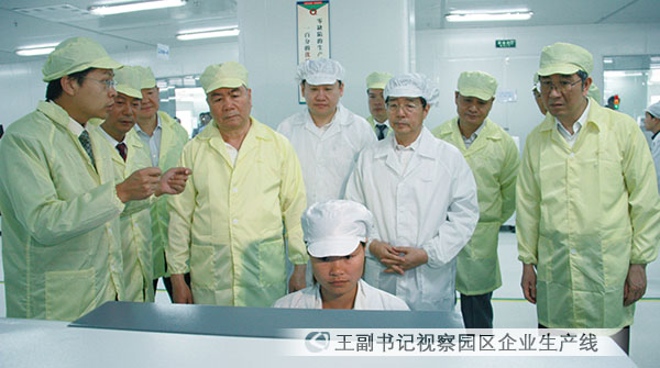聶玉春副總經(jīng)理首先向王樂泉副書記轉(zhuǎn)達了熊群力董事長等集團領(lǐng)導(dǎo)的問候,歡迎王副書記蒞臨中電旗下企業(yè)視察指導(dǎo)。在園區(qū)展廳,聶總向各位領(lǐng)導(dǎo)和嘉賓介紹了中國電子集團為了響應(yīng)中央西部大開發(fā)的號召,落實胡錦濤總書記關(guān)于“廣西沿海發(fā)展應(yīng)形成新的一極”的重要指示精神,體現(xiàn)中央企業(yè)的政治責任與社會責任,與廣西壯族自治區(qū)人民政府合作建設(shè)中國電子北海產(chǎn)業(yè)園,充分發(fā)揮雙方的優(yōu)勢,抓住北部灣經(jīng)濟區(qū)開發(fā)、開放和東盟自由貿(mào)易區(qū)建立的機遇,打造西部沿海地區(qū)電子信息產(chǎn)業(yè)生產(chǎn)制造基地及信息、服務(wù)、貿(mào)易中心的戰(zhàn)略舉措,介紹了北海產(chǎn)業(yè)園的建設(shè)發(fā)展和產(chǎn)業(yè)集聚情況,并陪同參觀了相關(guān)企業(yè)的展品及景光電子生產(chǎn)車間。