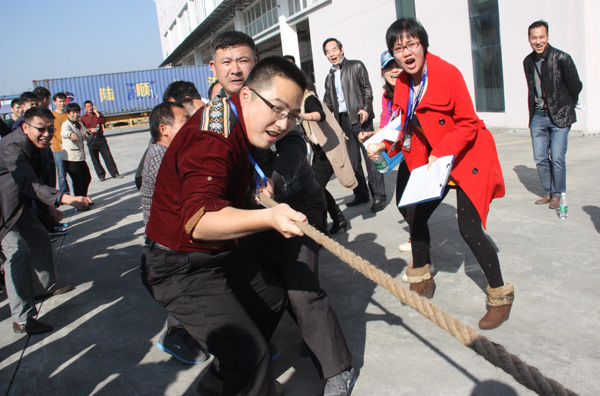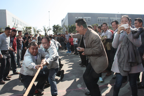 下午,一場(chǎng)別開生面的拔河比賽將活動(dòng)推向小高潮。拔河比賽以促進(jìn)企業(yè)交流為宗旨,豐富職工體育活動(dòng)為目的,為企業(yè)搭建展現(xiàn)集體風(fēng)采的舞臺(tái),從而發(fā)揚(yáng)團(tuán)隊(duì)精神,增強(qiáng)凝聚力。此次比賽園區(qū)企業(yè)積極響應(yīng),共有11個(gè)企業(yè)組隊(duì)參加,特別是有些企業(yè)為了參賽,臨時(shí)停工,比賽結(jié)束后回單位繼續(xù)生產(chǎn),體現(xiàn)了園區(qū)大家庭的凝聚力。每支參賽隊(duì)伍共15人,其中男生10人,女生5人,實(shí)行淘汰制晉級(jí)方式。當(dāng)比賽哨聲響起,各參賽隊(duì)員們口中一起高呼“一二,一二”,雙手緊握長(zhǎng)繩,憋足勁拼命往后拉,拉拉隊(duì)在旁助陣加油,恨不得抓起繩子跟隊(duì)員們一起努力,各種加油聲、吶喊聲此起彼伏,回響至整個(gè)園區(qū)。經(jīng)過激烈較量,最終冠捷科技獲得冠軍,瑞達(dá)物業(yè)獲得亞軍。