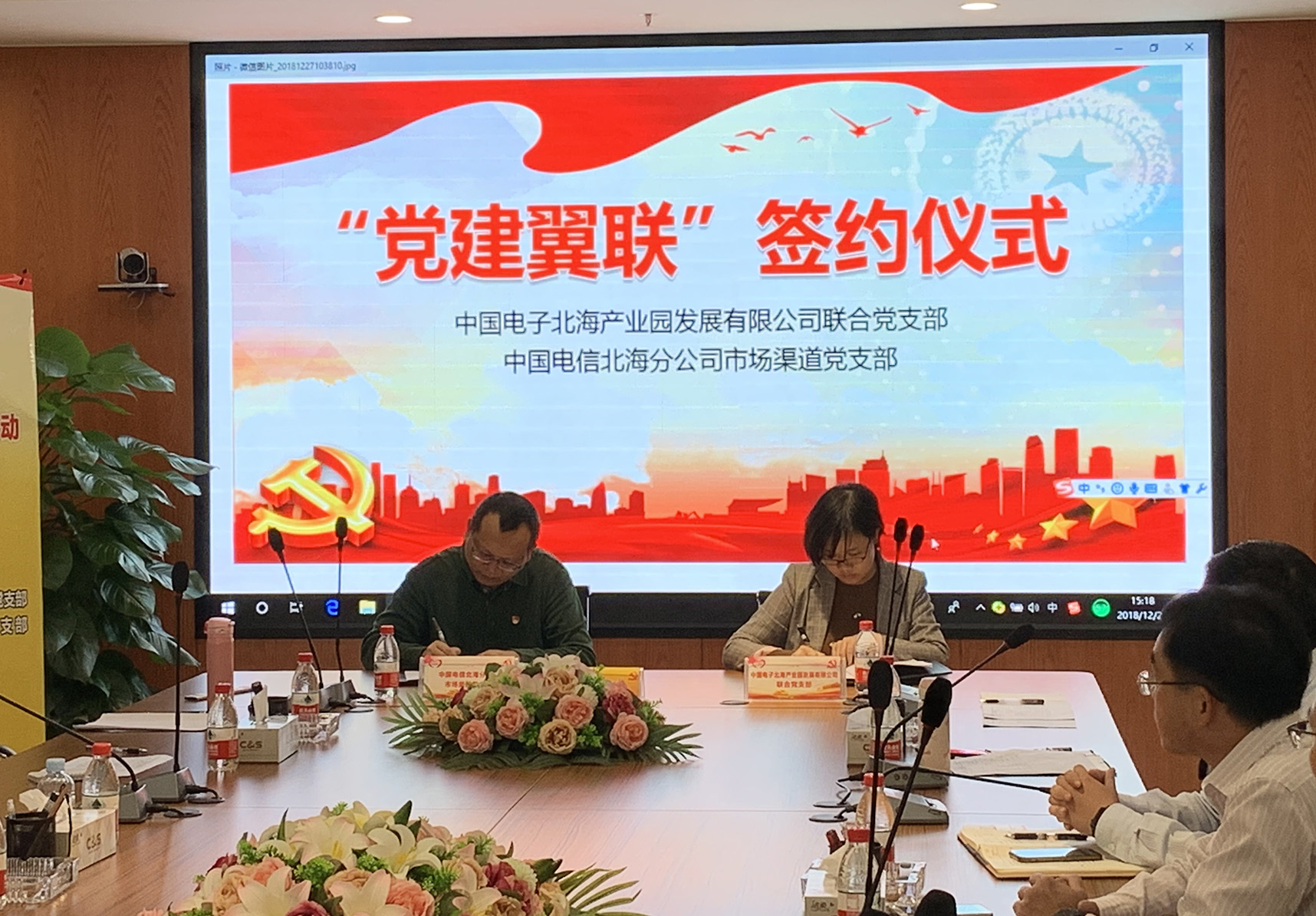 為深入學(xué)習(xí)貫徹黨的十九大精神,堅持以習(xí)近平新時代中國特色社會主義思想為指導(dǎo),落實新時代黨的建設(shè)總要求,充分發(fā)揮基層黨支部的主體作用,激發(fā)黨員的活力。2018年12月27日,中國電子北海產(chǎn)業(yè)園發(fā)展有限公司聯(lián)合支部委員會、中國電信股份有限公司北海分公司市場渠道支部委員會簽署了“黨建翼聯(lián)”合作書,旨為整合雙方在黨建、科技、電子信息產(chǎn)業(yè)的資源優(yōu)勢,以共建共享為基礎(chǔ),以合作共贏為目的,積極拓展黨組織功能,發(fā)揮黨員先鋒模范作為,積極推進(jìn)事業(yè)發(fā)展,助力北海電子信息產(chǎn)業(yè)升級轉(zhuǎn)型。