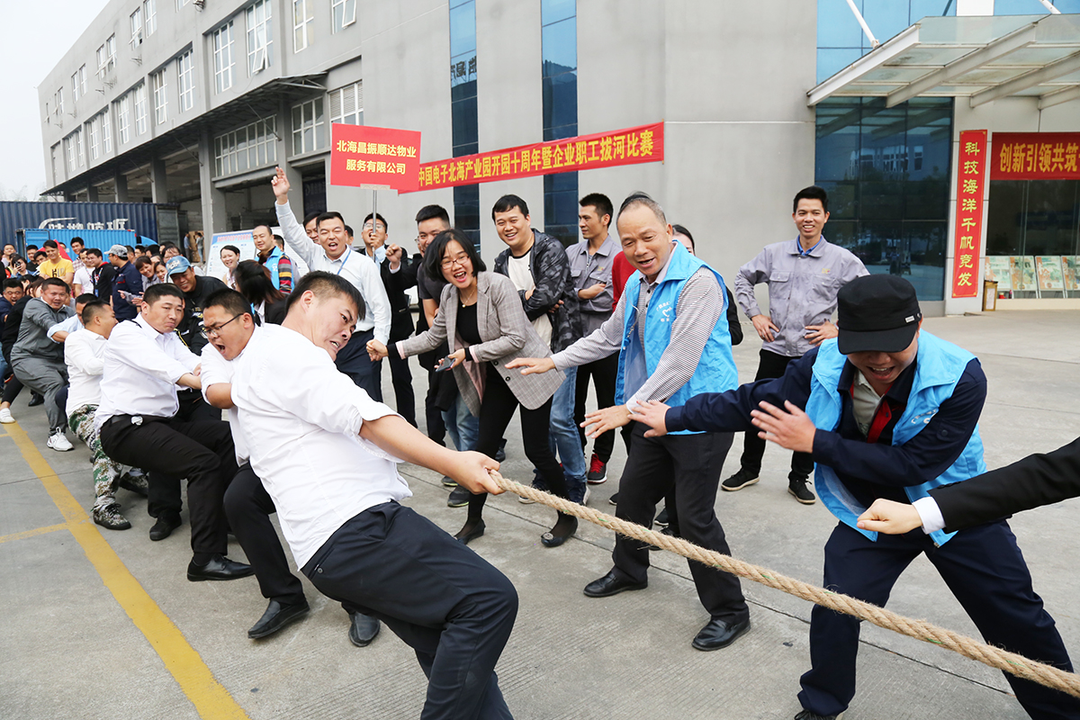 2019年12月30日下午,中國(guó)電子北海產(chǎn)業(yè)園組織各入園企業(yè),舉行拔河比賽活動(dòng),慶祝中國(guó)電子北海產(chǎn)業(yè)園開園十周年。